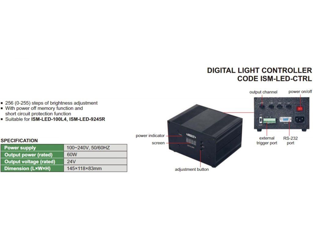 Controler digital de LED de la INSIZE cu sursă de alimentare.
