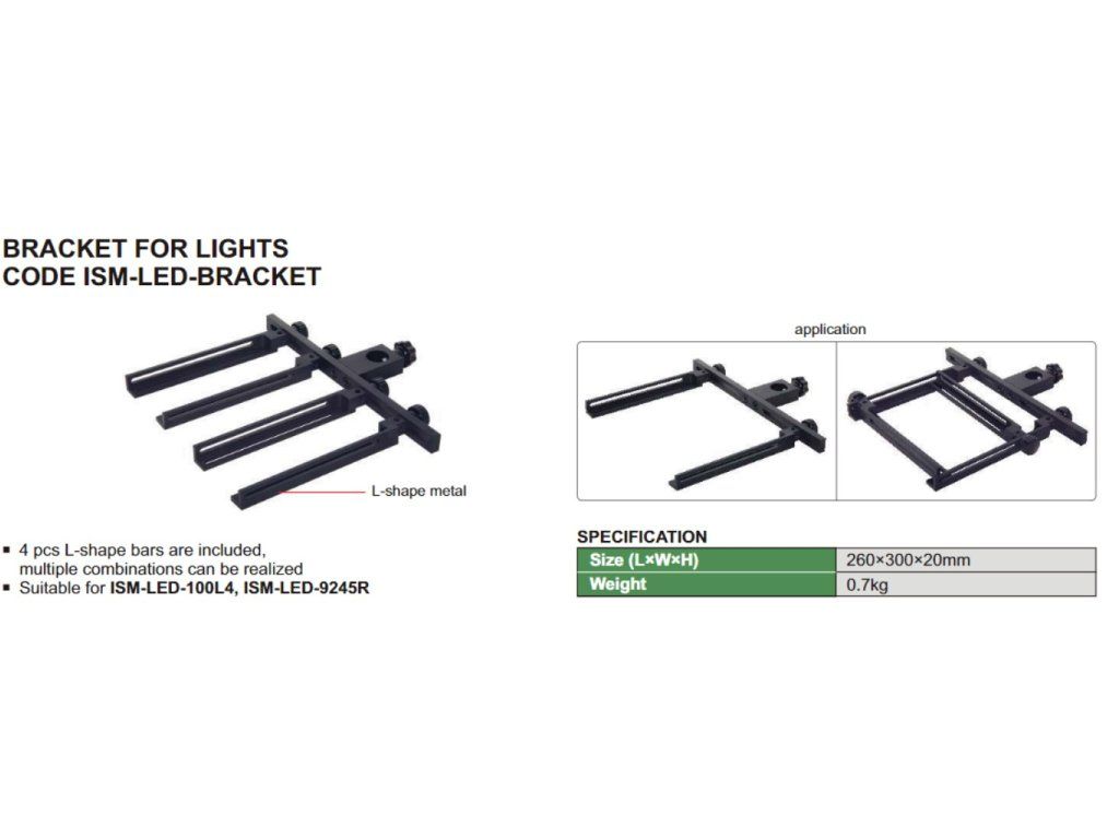 Suport pentru lumină LED de la INSIZE. Cu patru bare, cu care pot fi realizate mai multe combinații.