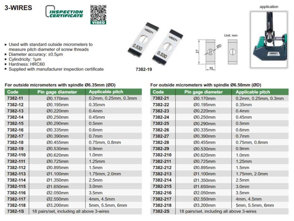 Cabluri cu trei fire de la Insize, pentru măsurarea filetelor. Potrivite pentru micrometre de exterior.