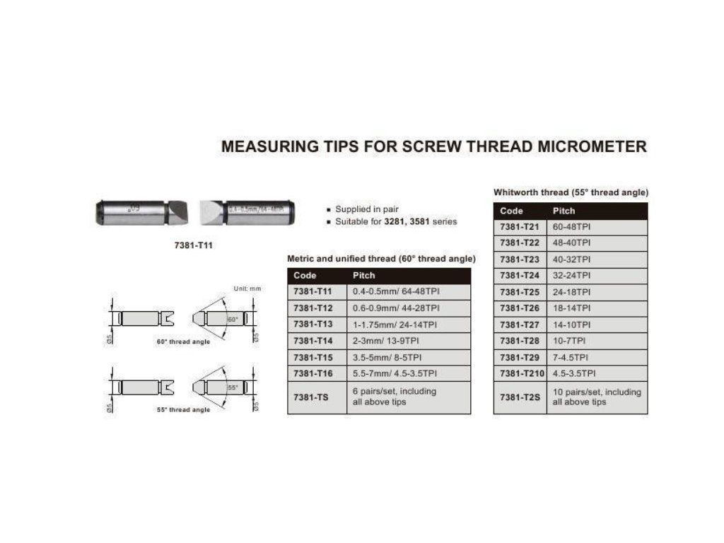 Vârfuri de măsurare cu pas 5,5~7 mm pentru micrometre pentru filete de la INSIZE.