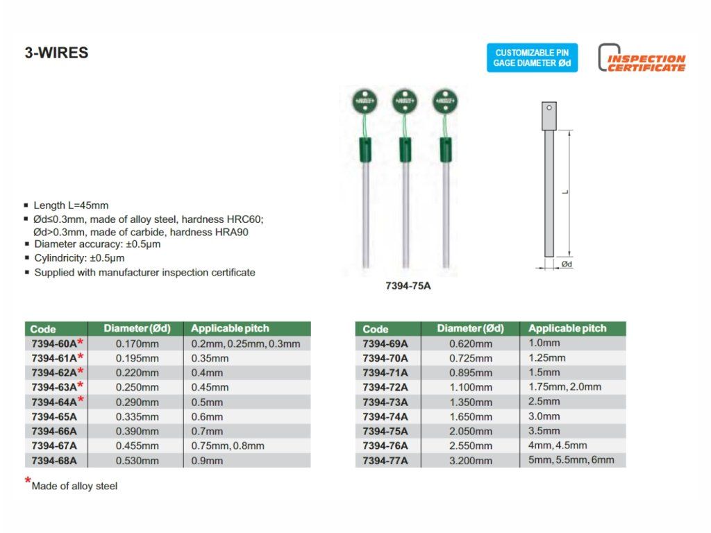 Fire de măsurare cu diametru 0,895 mm de la INSIZE. Fabricate din carbid.