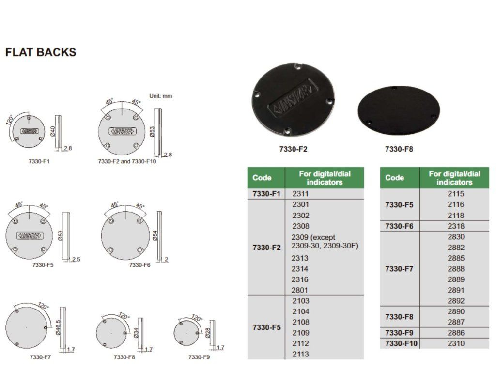 Carcasă spate plată de la Insize pentru ceasuri comparatoare.