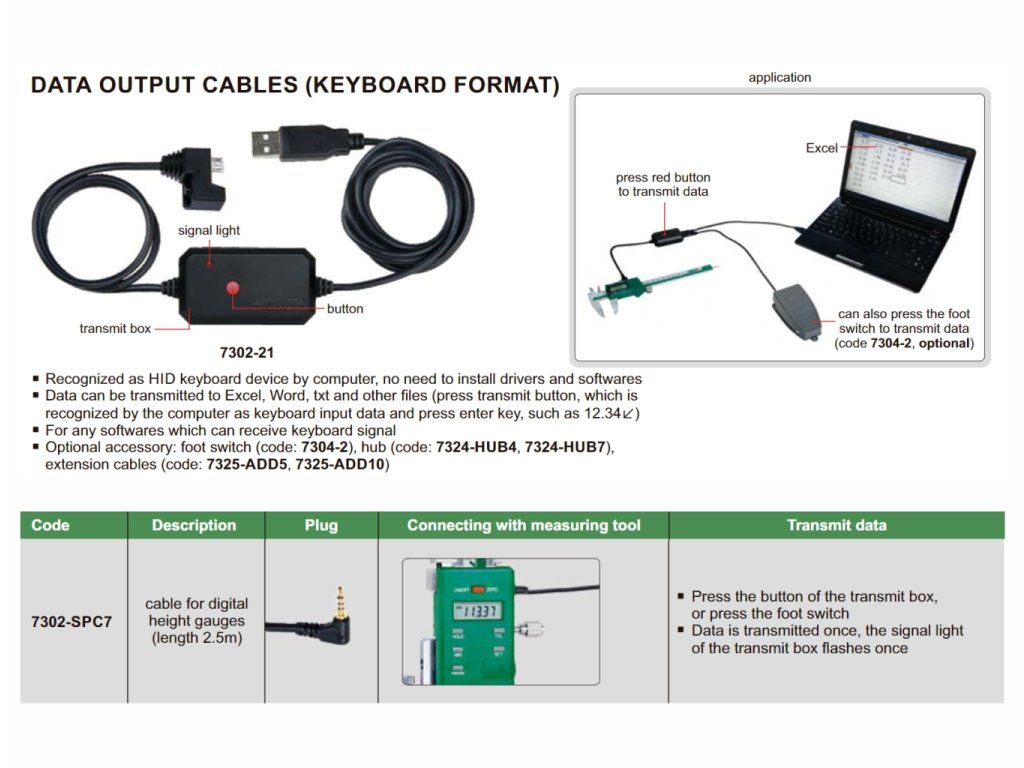 Cablu pentru transfer de date - șublere digitale de înălțime 7302-SPC7 INSIZE
