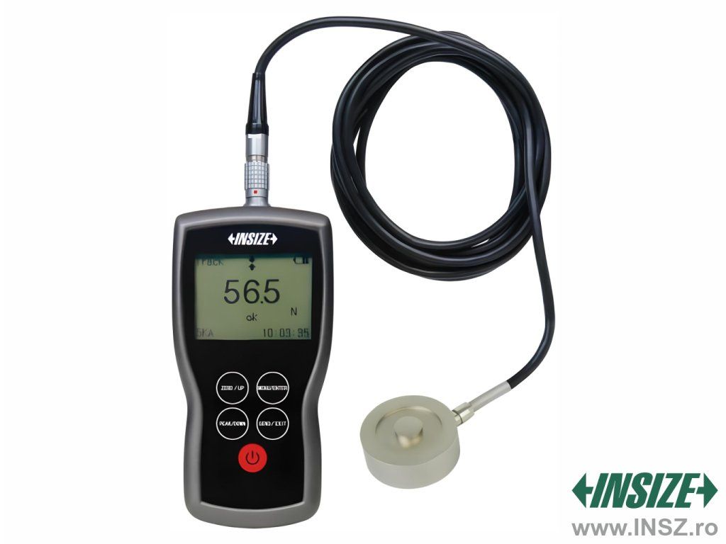 Dinamometru digital de la INSIZE cu senzor extern (tip C). Sarcină maximă 100 kN, rezoluție 0,01 kN, precizie ±0,2 %, inclusiv software pentru ieșire date prin USB.