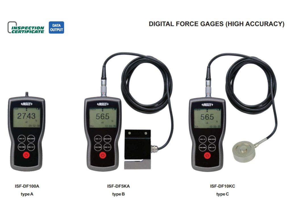 Dinamometru digital de la INSIZE cu senzor extern (tip C). Sarcină maximă 200 kN, rezoluție 0,05 kN, precizie ±0,2 %, inclusiv software pentru ieșire date prin USB.