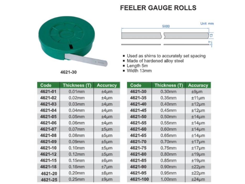 Lere de grosime bandă (ruletă) din oțel aliat, călit de la INSIZE, grosime 0,35 mm și precizie 11 μm.