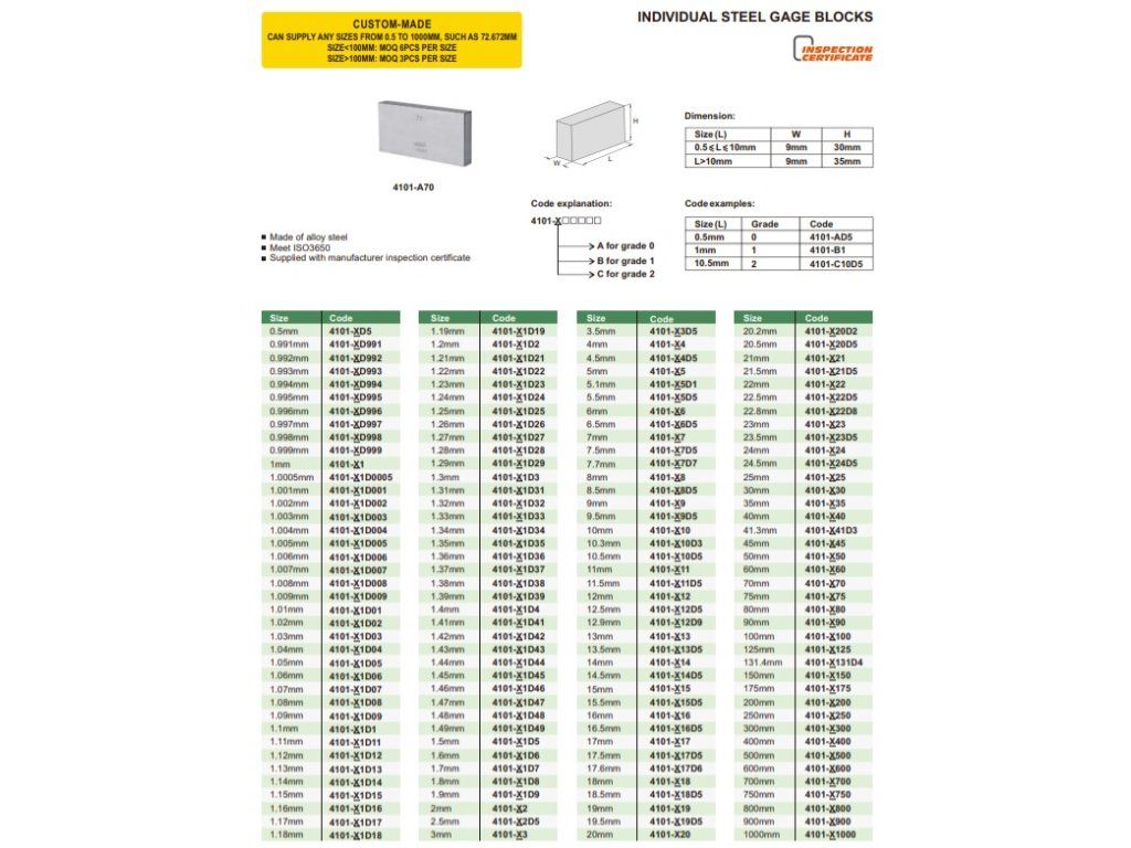 Cală plan paralelă din oțel 0,5 mm, 4101-AD5 INSIZE