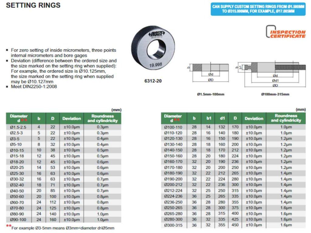 Inel de setare cu diametru de 1,5 mm, abatere ±10 µm de la INSIZE, pentru setarea punctului zero a micrometrelor de interior, a micrometrelor în trei puncte și a micrometrelor de adâncime.