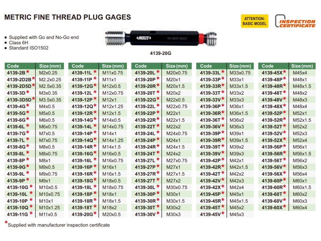 Calibru tampon pentru filete, de la Insize. Cu două capete "trece” și ”nu trece", clasă 6H, în conformitate cu standardul ISO 1502.
