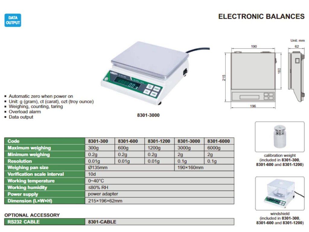 Cântar electronic 300 g/0,01 g, ieșire date INSIZE