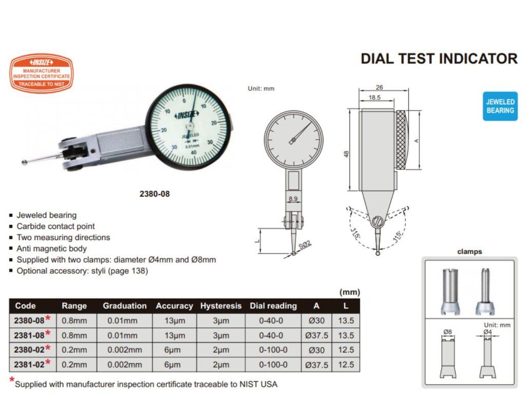 Ceas comparator cu levier de înaltă precizie, diametru ceas 37 mm, 0.2/0.002 mm - Insize