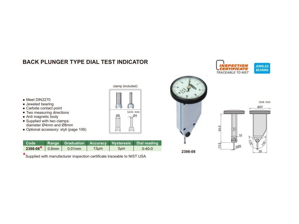 Ceas comparator cu levier 0,8/0,01 mm, tip vertical INSIZE