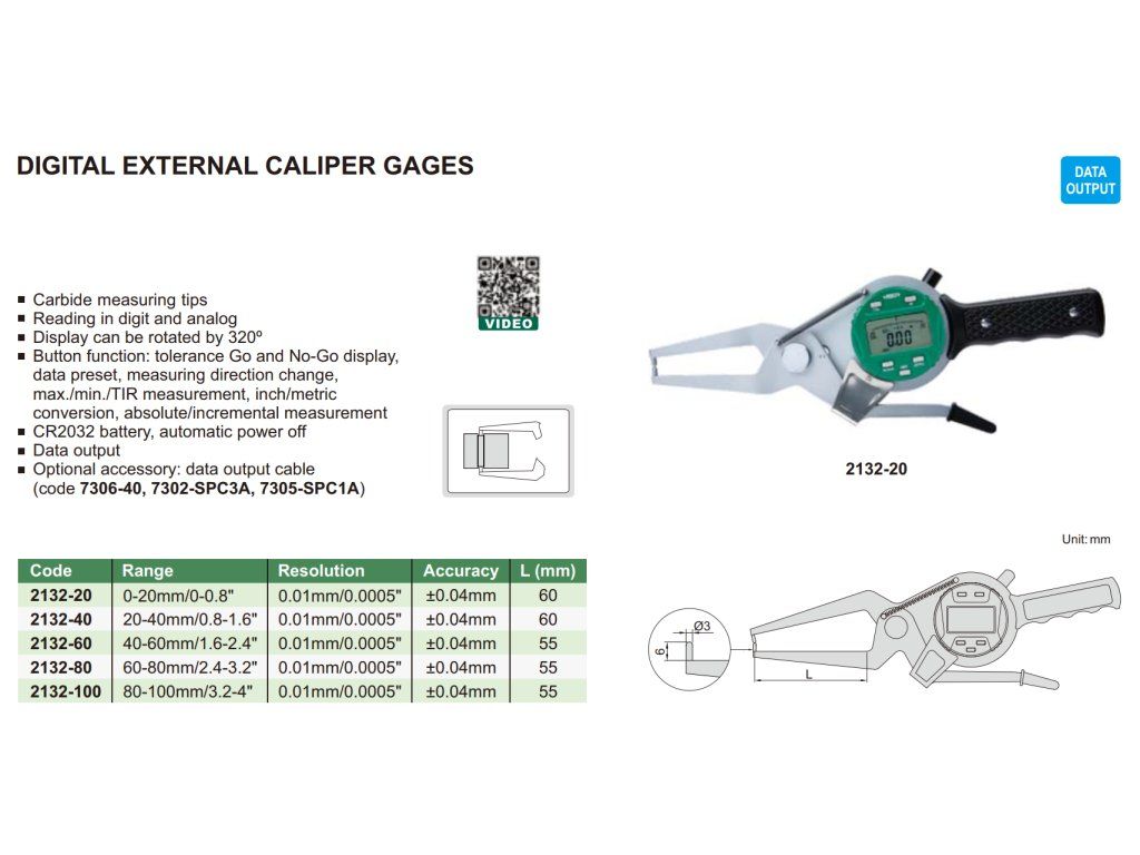 Ceas comparator digital de exterior de la Insize, cu interval 20-40 mm și rezoluție 0,01 mm. Display rotativ la 320°, posibilitate de transfer de date.