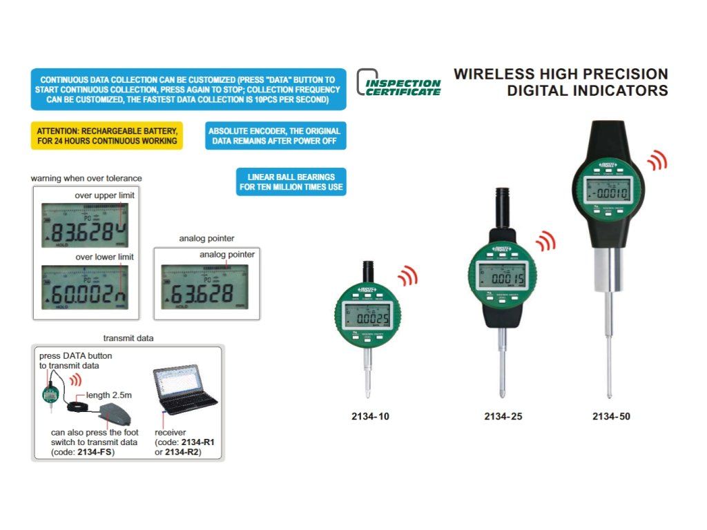 Ceas comparator digital 50,8 mm/2", transfer de date wireless INSIZE