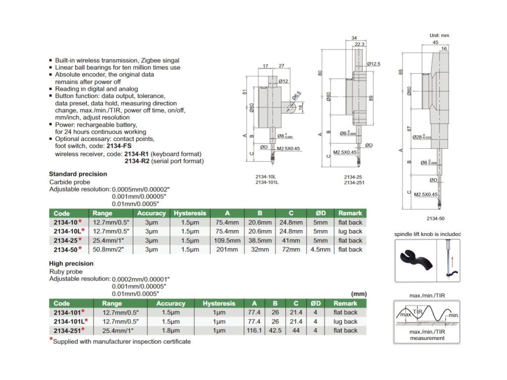 Ceas comparator digital de înaltă precizie de la Insize, cu interval de măsurare 50,8 mm/2″, precizie 3 µm, transmisie de date wireless încorporată.