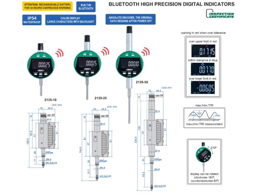 Ceas comparator digital de înaltă precizie 0-25,4 mm Bluetooth INSIZE