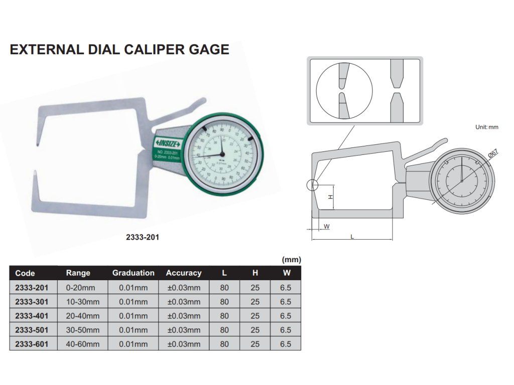 Ceas comparator mecanic de exterior 0-20/0,01 mm, cu brațe lungi INSIZE