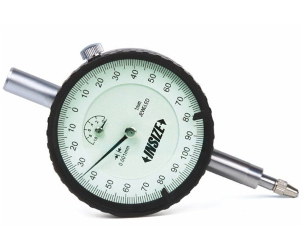 Ceas comparator mecanic de la INSIZE, cu interval de măsurare 1 mm, rezoluție 0,001, precizie 5 µm, carcasă spate plată.