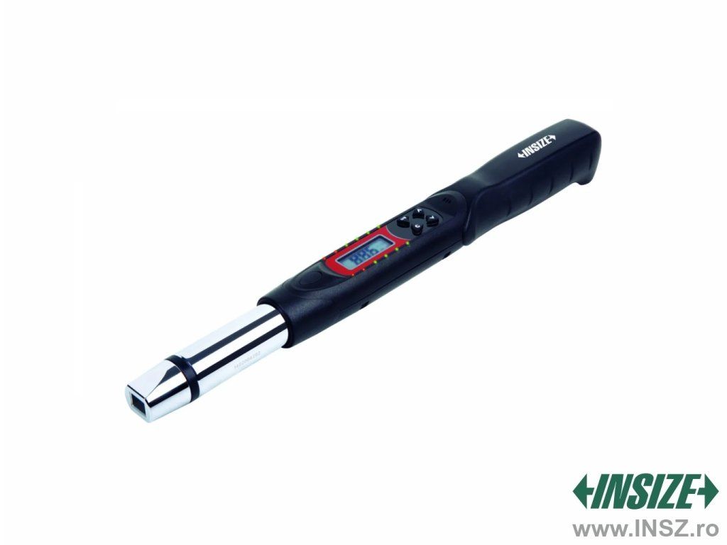 Cheie dinamometrică digitală de la Insize, cu funcționare în sensul acelor de ceasornic și invers sensului acelor de ceasornic. Semnalizare sonoră și vizuală, mod de lucru Peak și Track.