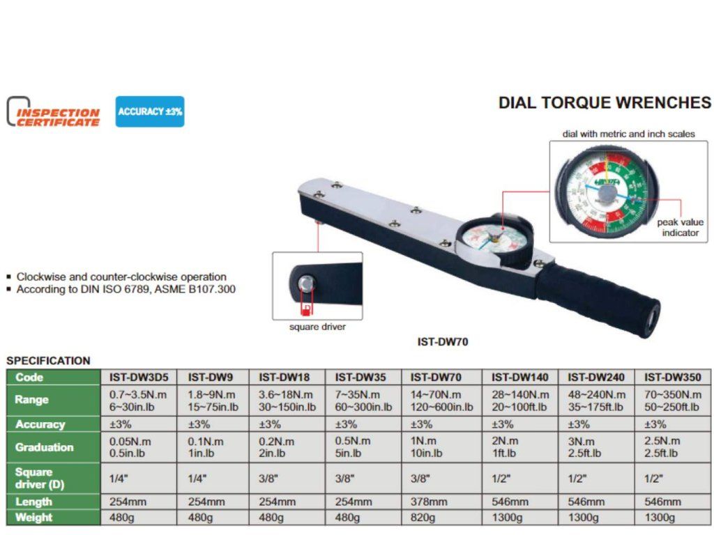 Cheie dinamometrică mecanică cu ceas comparator 48-240 Nm INSIZE