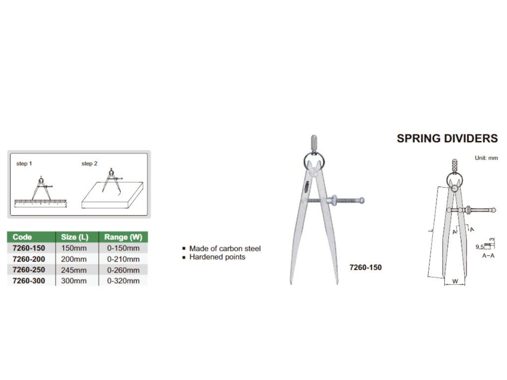 Compas cu arc de la Insize, interval 0-210. Fabricat din oțel carbon.