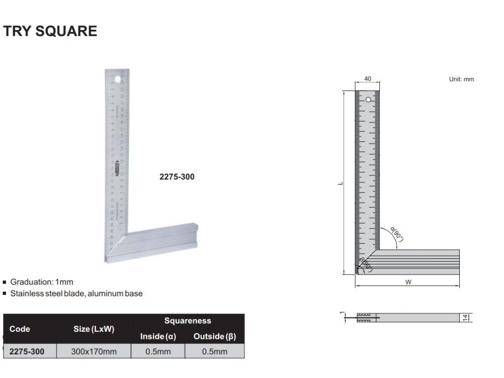 Echer cu gradație în mm de la Insize, cu dimensiuni 300x170 mm.