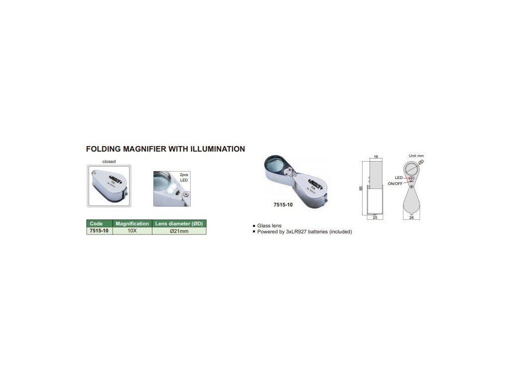 Lupă pliabilă cu iluminare LED, diametru 21 mm INSIZE