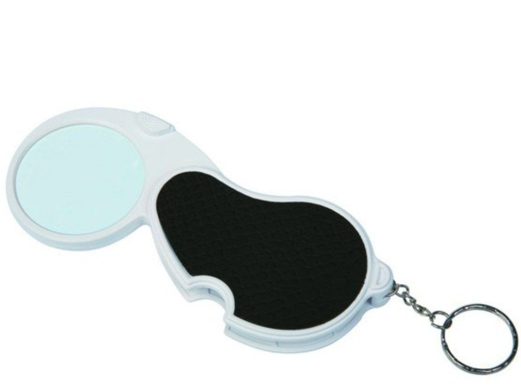 Lupă pliabilă de la Insize, cu iluminare LED, lentilă din rășină cu diametru 45 mm și mărire 2,5x.