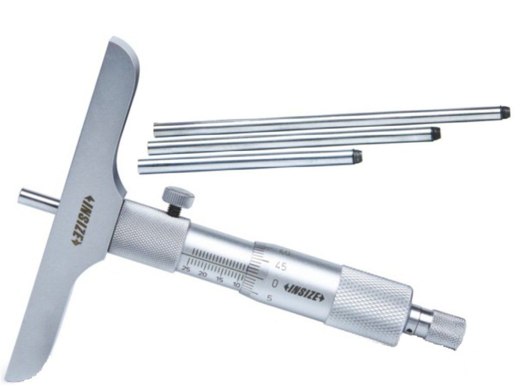 Micrometru mecanic de adâncime Insize, cu interval 0-75 mm și rezoluție 0,01 mm. Tije de măsurare cu capăt plat.