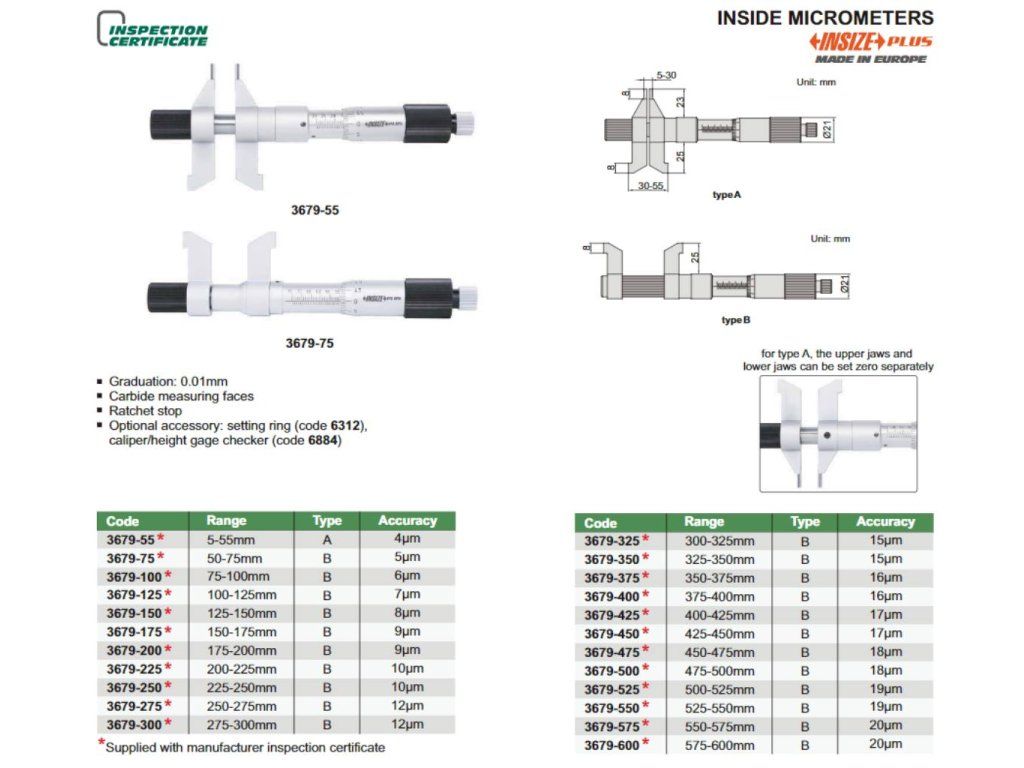 Micrometru mecanic de interior în 2 puncte 100-125/0,01 mm, tip B INSIZE PLUS