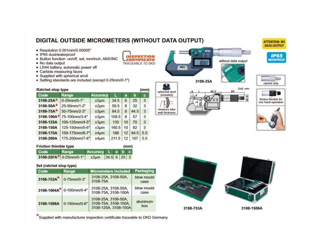 Micrometru digital de exterior 0-25/0,001 mm IP65 INSIZE