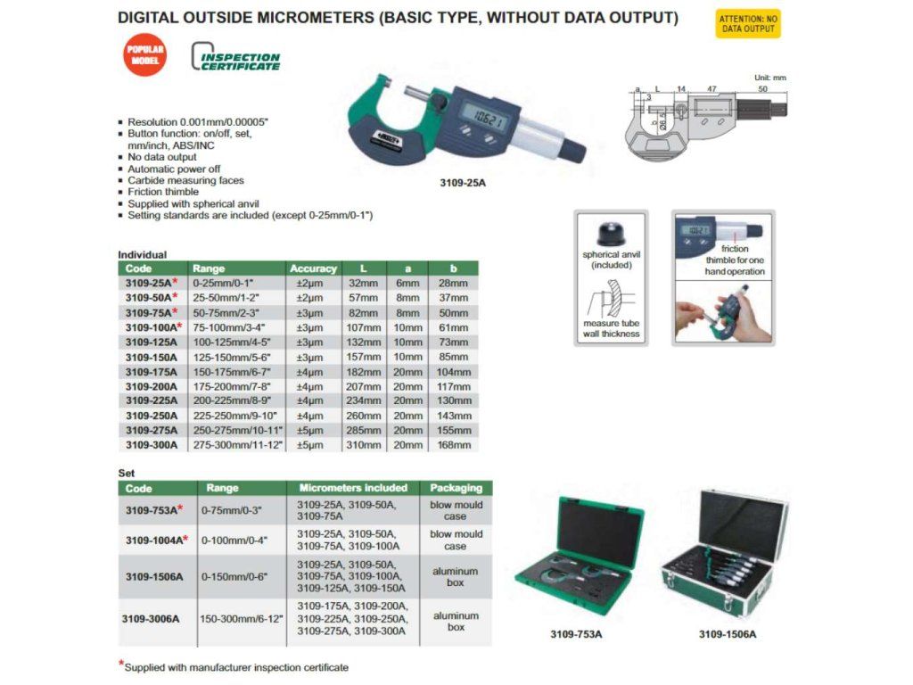 | Categorie: | Micrometre digitale |