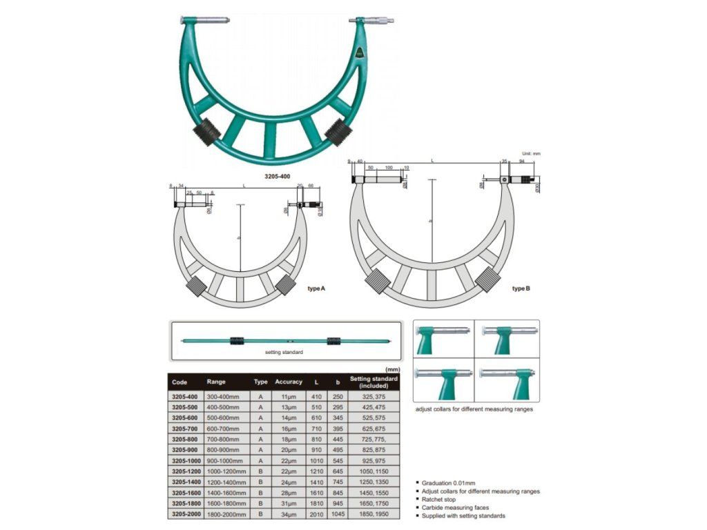 Micrometru mecanic 1800-2000/0,01 mm cu palpator extensibil, tip B INSIZE