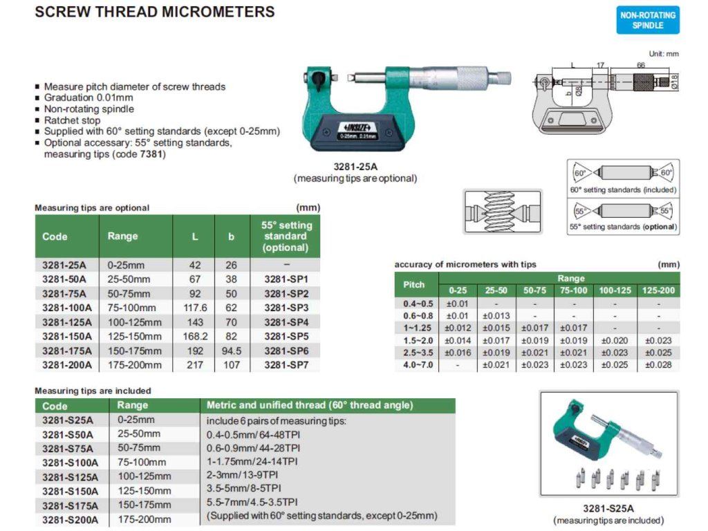 | Categorie: | Micrometre pentru filete |