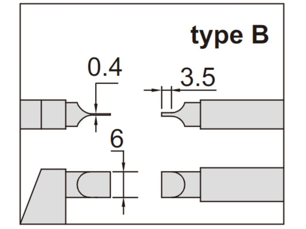 Micrometru mecanic de la INSIZE cu suprafețe de măsurare subțiri. Interval 0-25 mm și rezoluție 0,01 mm, pentru caneluri, arbori canelați. Cu arbore nerotativ, tip B - vârfuri foarte subțiri.