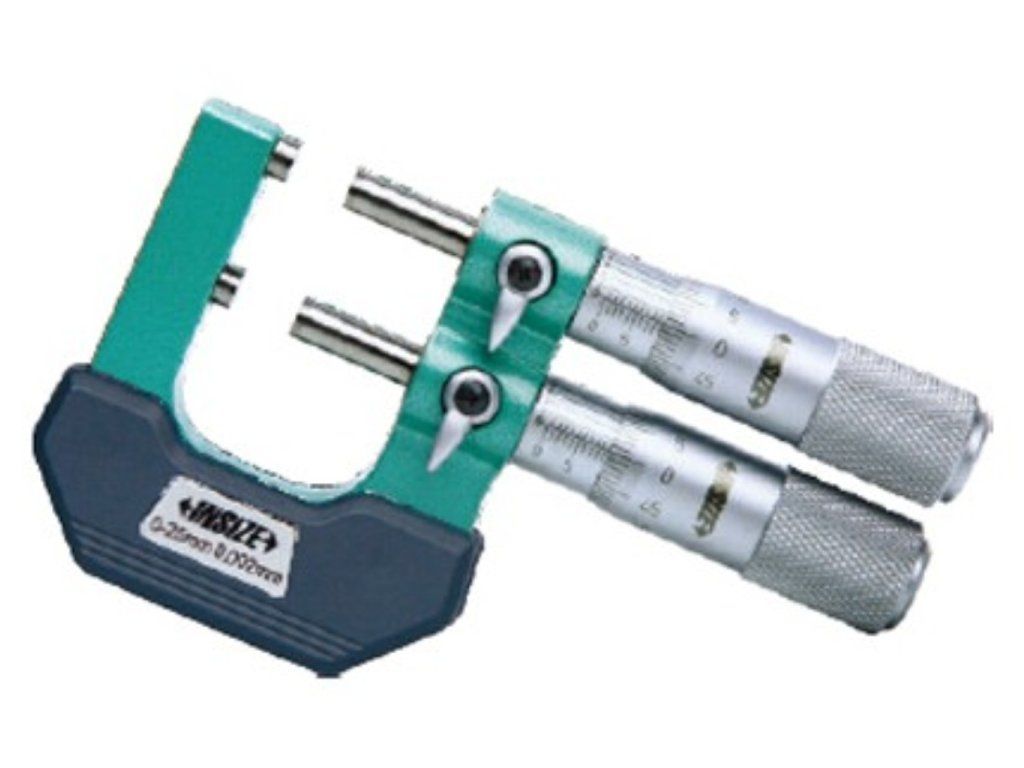Micrometru mecanic de la Insize cu interval 0-25 mm și rezoluție 0,002 mm pentru setarea limitelor inferioare și superioare (valori GO și NOGO).