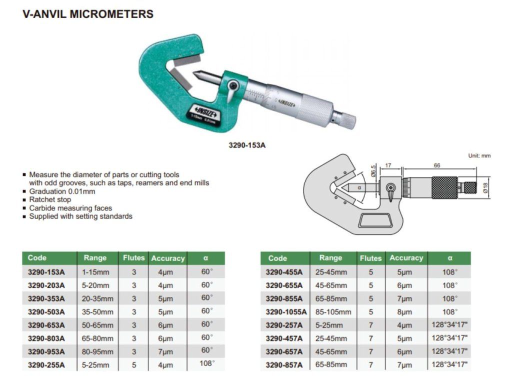 Micrometru mecanic prismatic de la Insize, cu interval 25-45 mm și rezoluție 0,01 mm, pentru măsurarea sculelor de tăiere cu cinci muchii, cum ar fi burghie, alezoare, freze etc.