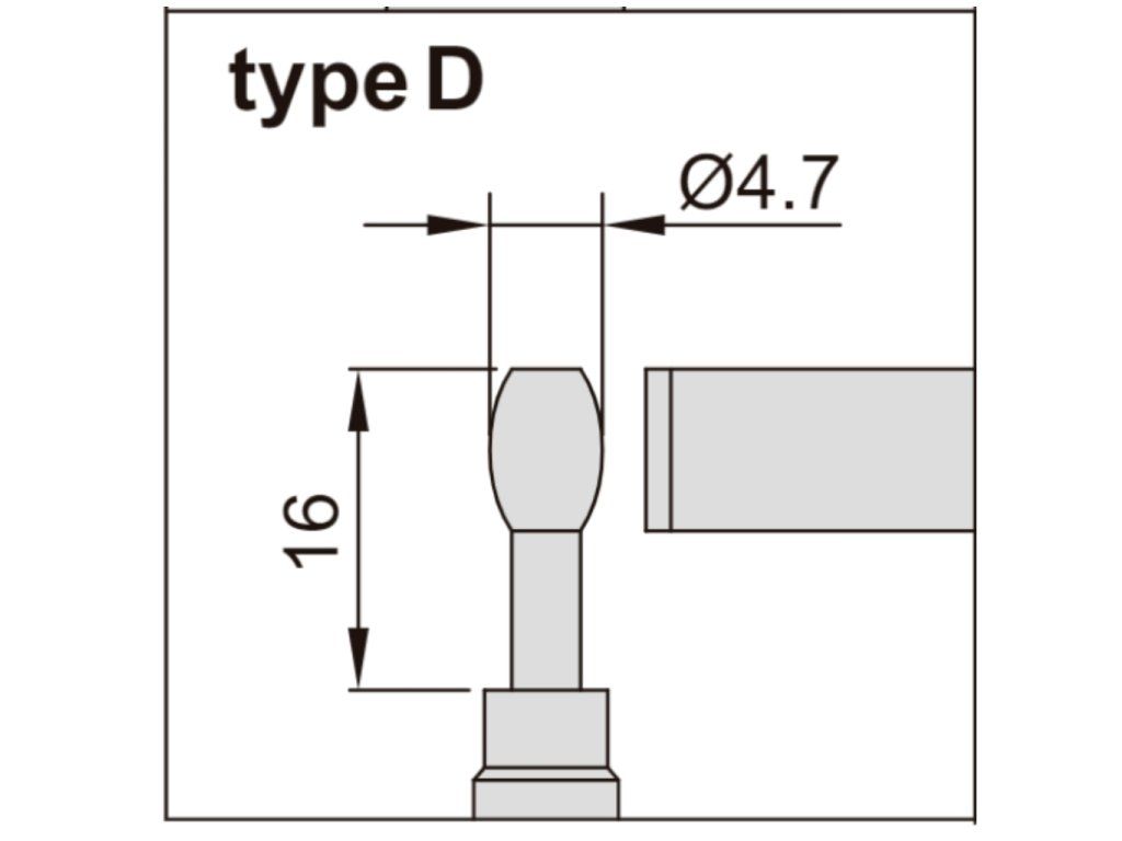 - D (nicovală cilindrică cu Ø 4,7 mm și lungime de 16 mm)