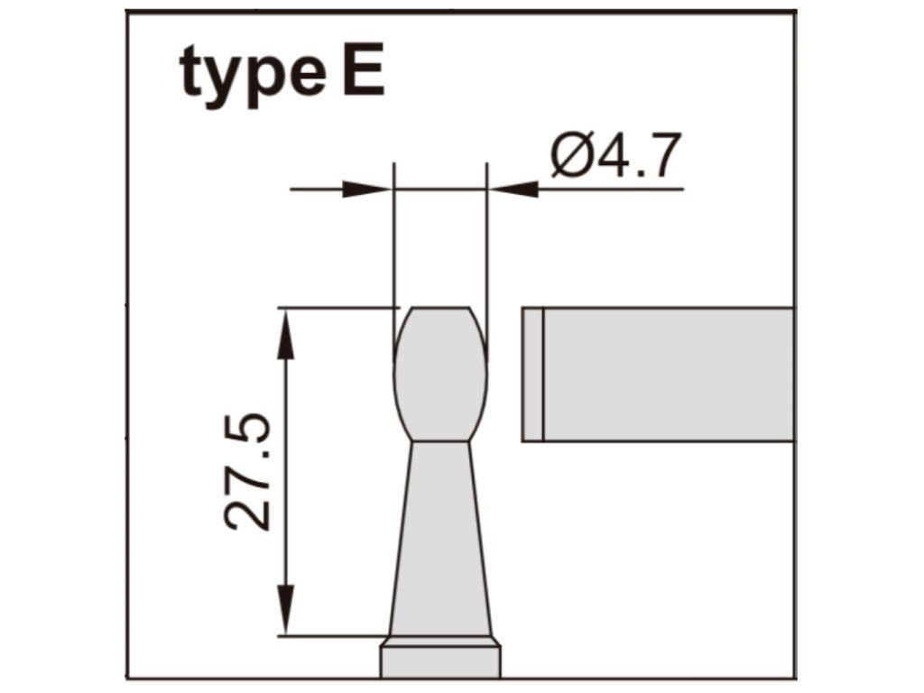 - E (nicovală cilindrică cu Ø 4,7 mm și lungime de 27,5 mm)