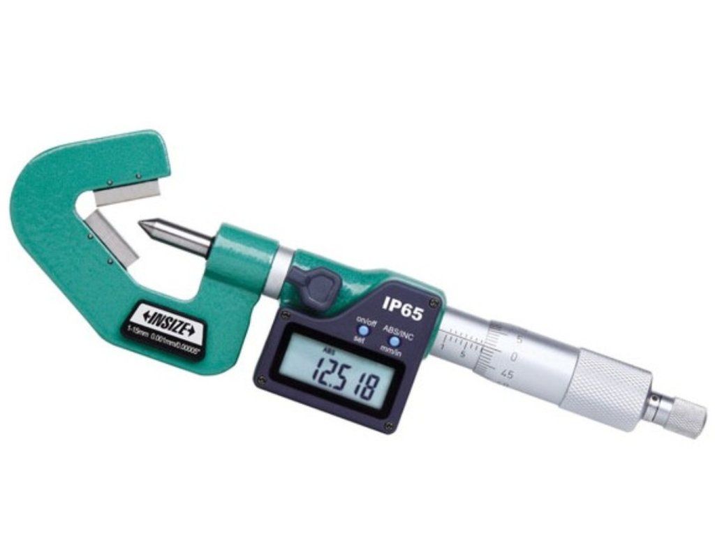 Micrometru digital prismatic rezistent la apă de la Insize, cu interval 35-50 mm și rezoluție 0,001 mm, pentru măsurarea sculelor de tăiere cu trei muchii, cum ar fi burghie, alezoare, freze etc. Cu port ieșire date.