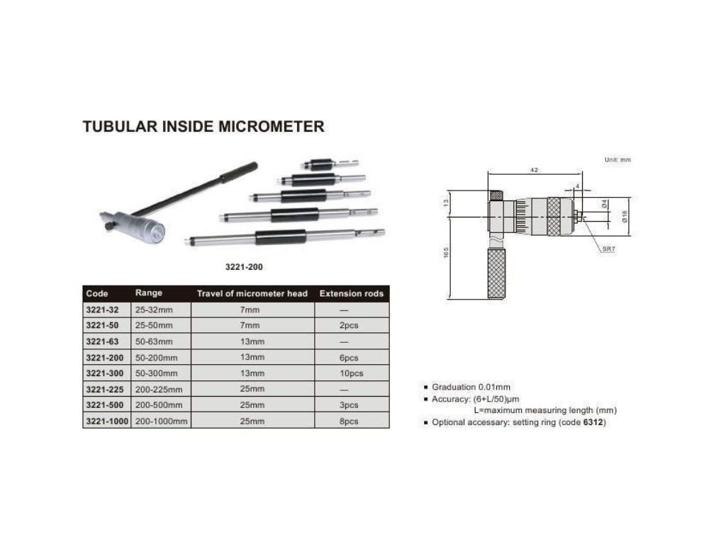 Micrometru mecanic tubular de interior 200-225/0,01 mm INSIZE