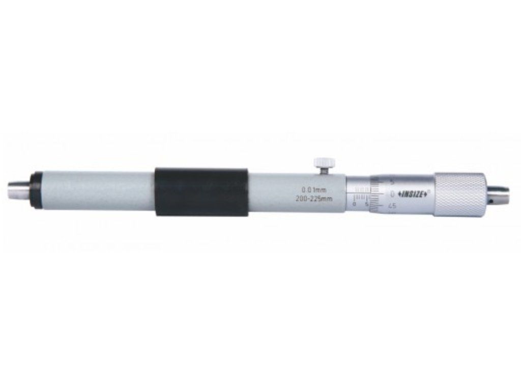 Micrometru mecanic tubular de interior de la Insize, cu interval 200-225 mm, rezoluție 0,01 mm și suprafețe de măsurare din carbură.