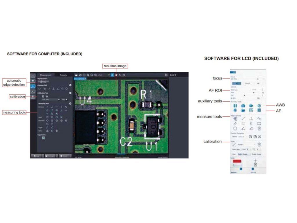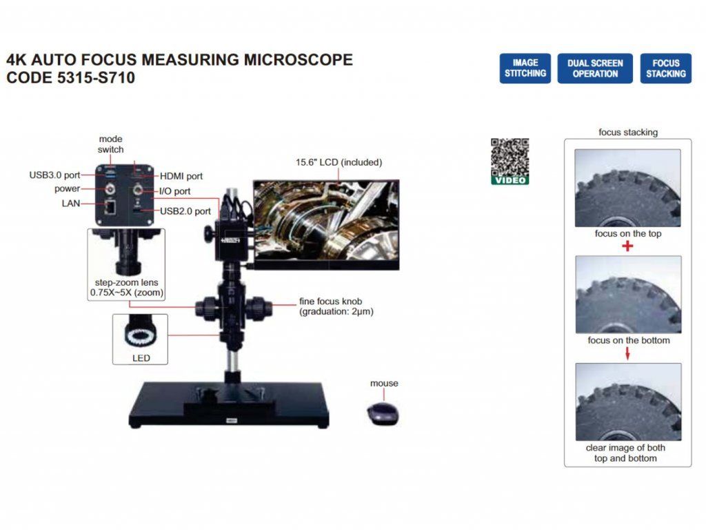 Microscop digital de măsurare 5315-S710 de înaltă rezoluție 12M și mărire 15~100X de la INSIZE. Focalizare automată, posibilitate de comutare între mod LCD și mod computer. Software pentru calculator inclus.