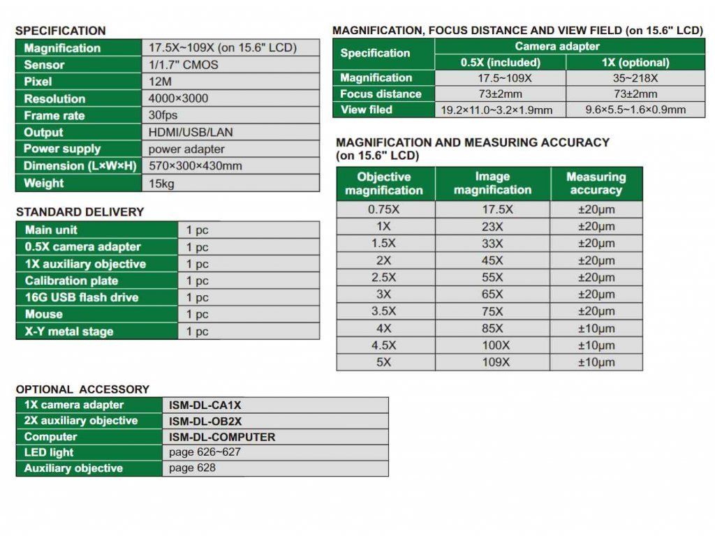 - Obiective auxiliare (ISM-DL-OB03X, OB05X, OB075X, OB1X, OB1D5X, OB2X)
