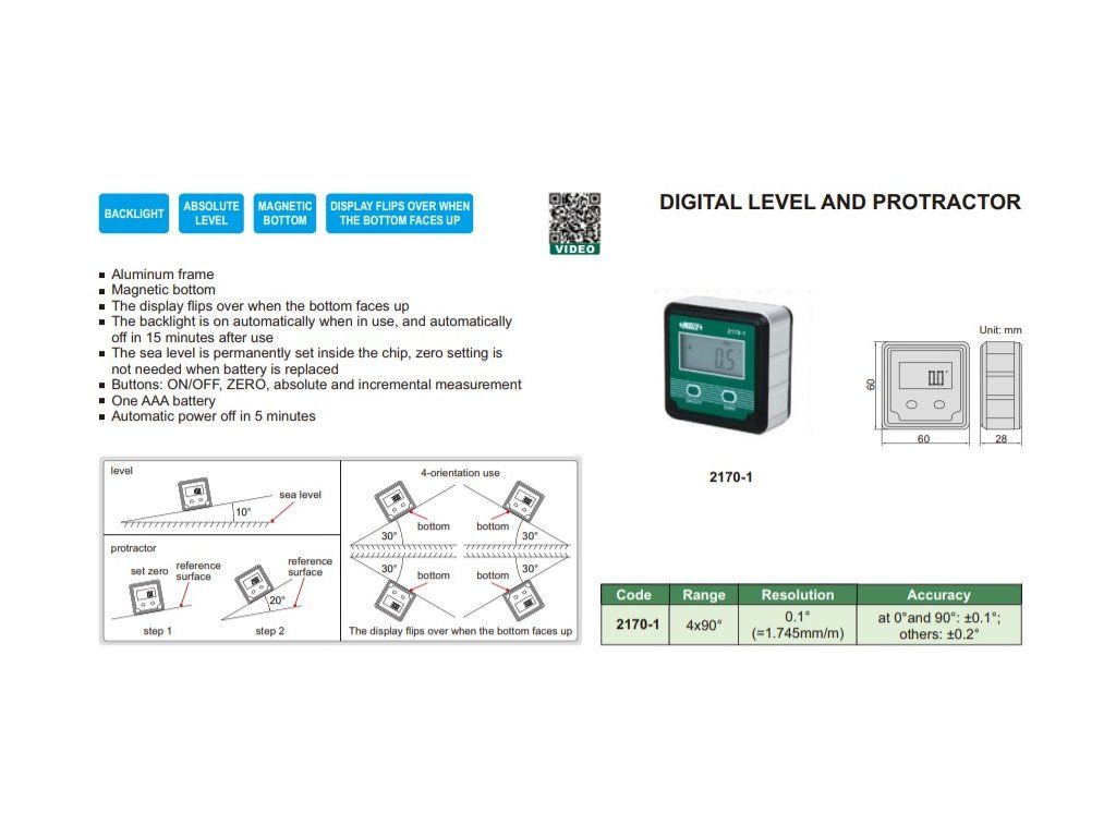 Nivelă digitală, inclinometru 2170-1 INSIZE