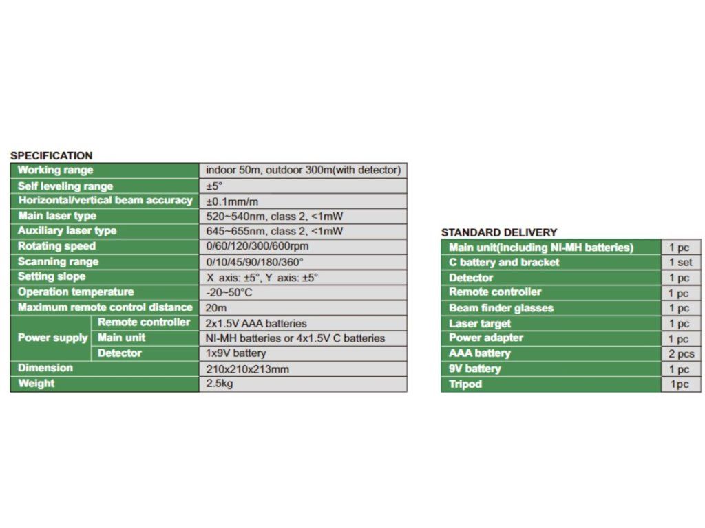 - Fasciculul laser verde se rotește la 360° orizontal și vertical