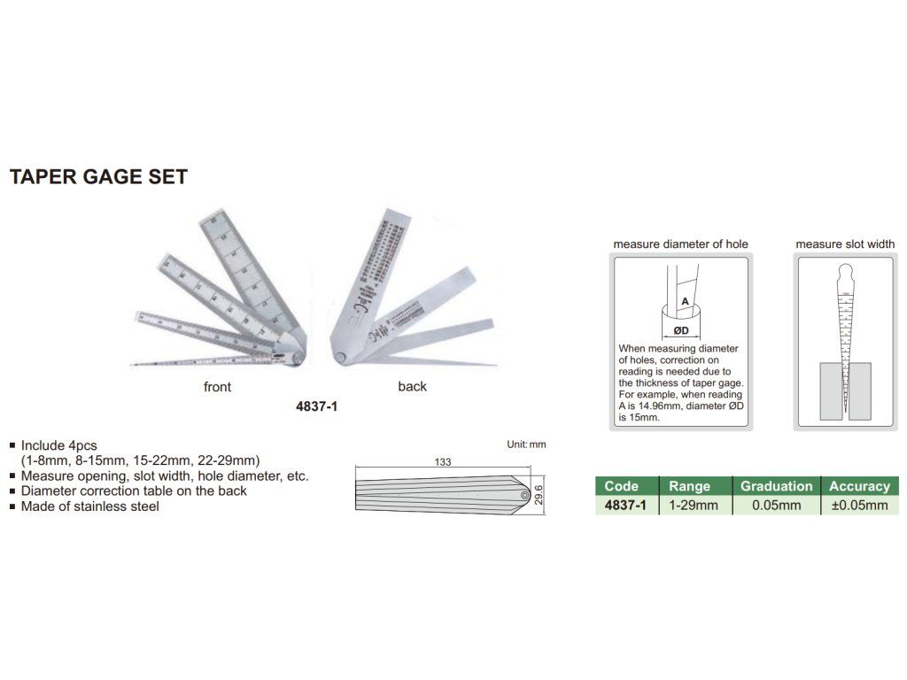 Set pene de măsurat 1-29/0,05 mm INSIZE