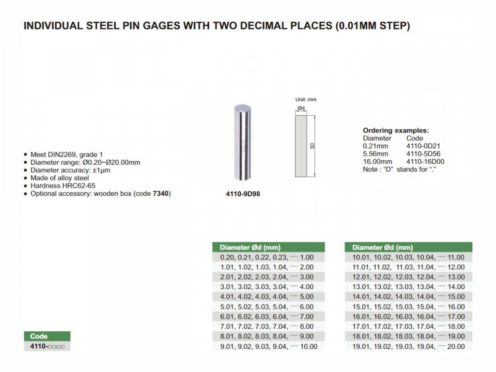 Pin cilindric de măsurare din oțel 2,06 mm, 4110-2D06 INSIZE