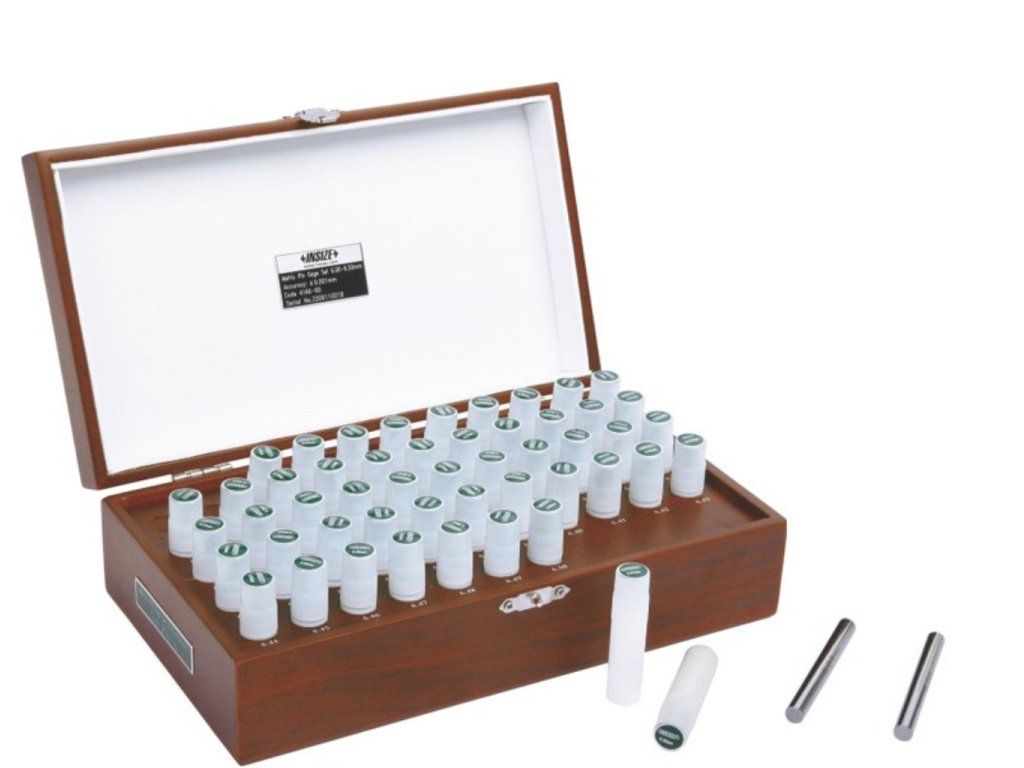 Set de pini cilindrici de măsurare de la Insize, cu diametru de 1,00 – 2,00 mm, din oțel aliat. Set livrat în cutie de lemn.