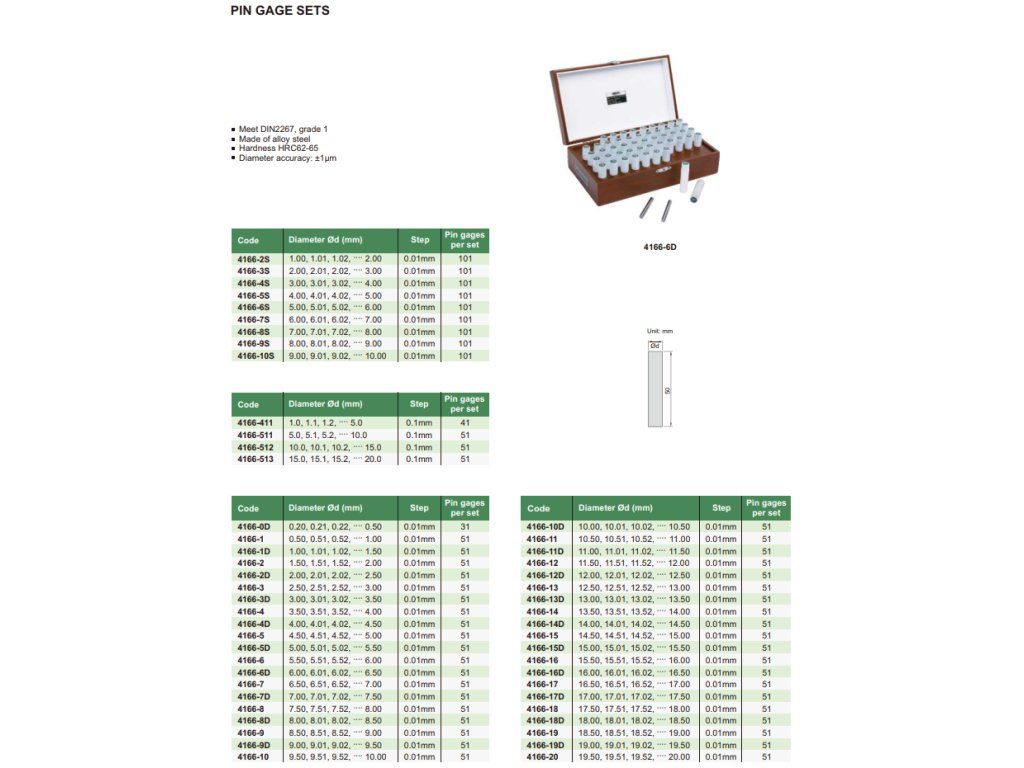 Set pini cilindrici de măsurare din oțel 1,00 – 2,00 mm 4166-2S INSIZE